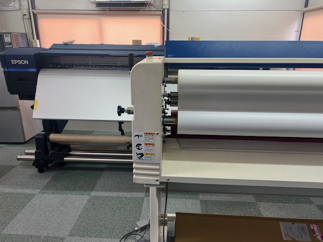 狭い工房(!)に、大型インクジェットプリンター、ラミネーターが鎮座し、