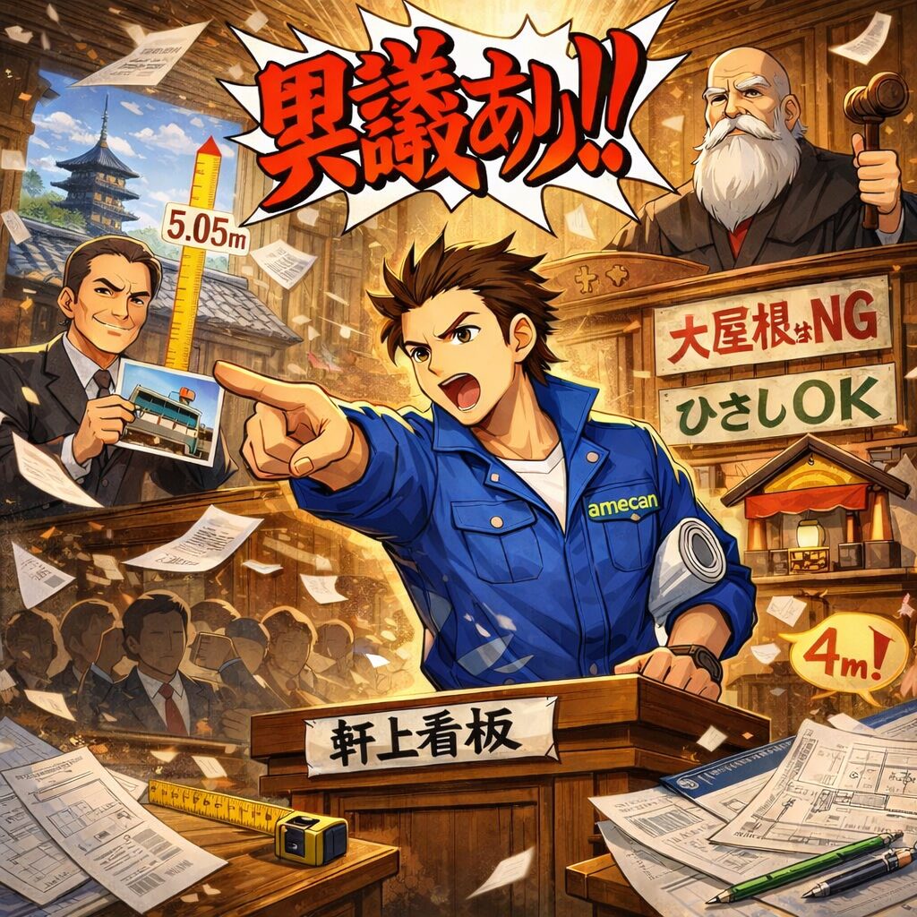 🧑⚖️第三尋問:大屋根はNG。OKなのは“ひさし”の上だけ