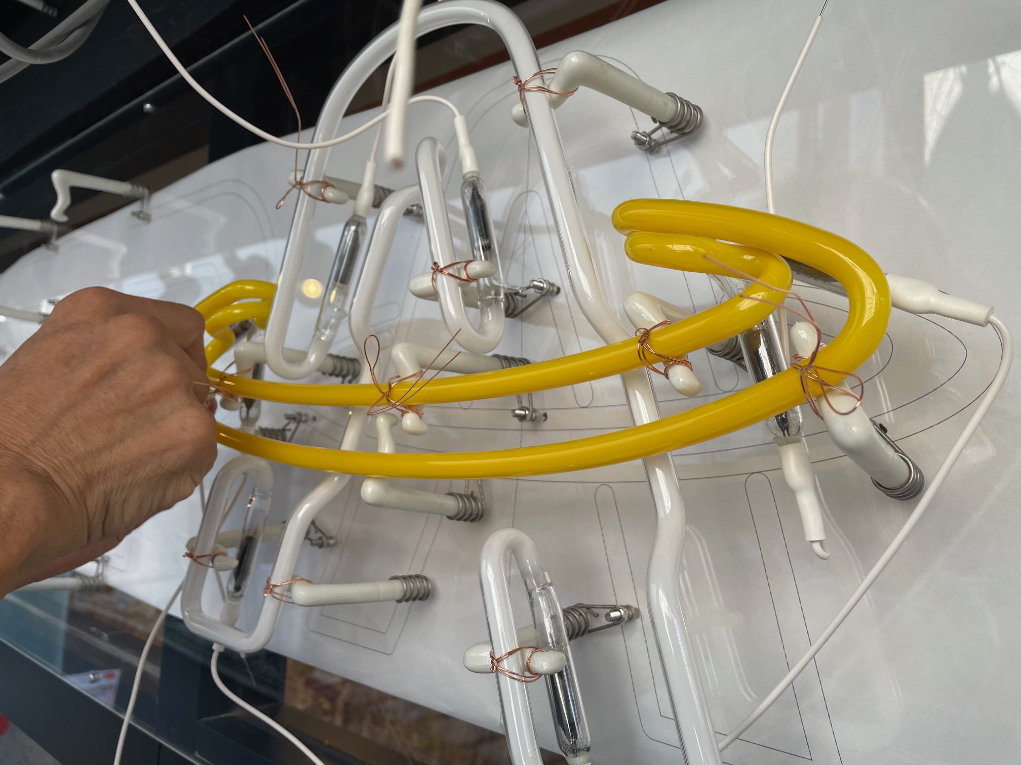 「ガラス管の中でガスが光ってる」という現象を利用した光看板です。
